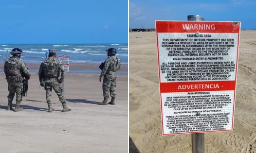 Sus imágenes muestran al menos a cuatro personas que entraron por la boca del Río Bravo para llegar a Playa Bagdad, donde colocaron estacas metálicas y los letreros, con mensajes en inglés y español que dicen: “Área restringida. Esta propiedad del Departamento de Defensa ha sido declarada zona restringida por autoridad del comandante, de acuerdo con las disposiciones de la directiva emitida por el secretario de Defensa, en virtud de las disposiciones de la sección 21 de la ley de Seguridad Interna de 1950“.