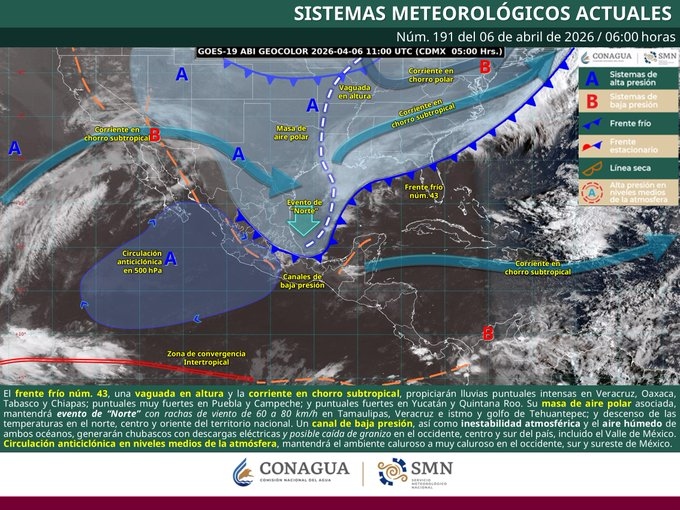 6 DE ABRIL DEL 2026 – LOCAL. Para este lunes 6 de abril, los habitantes y turistas de Quintana Roo deben estar preparados para una jornada de contrastes ambientales. La Coordinación Estatal de Protección Civil (Coeproc) ha informado que se espera un estado del tiempo caluroso durante gran parte del día, aunque con un incremento paulatino de la nubosidad. Este pronóstico se debe a la influencia del frente frío número 43 que se extiende por el Golfo de México, interactuando con la entrada de humedad proveniente del Mar Caribe, lo que mantendrá condiciones inestables en toda la península de Yucatán.