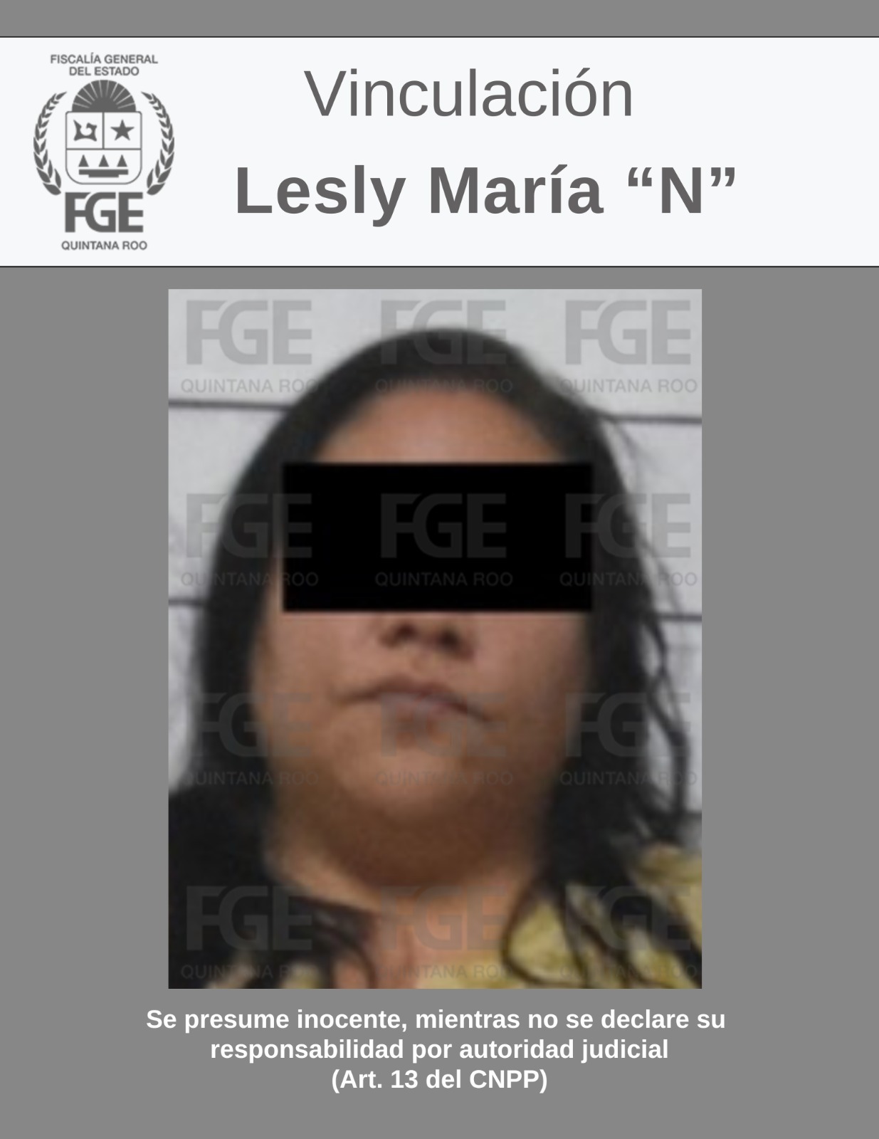 3 DE OCTUBRE DEL 2025 – LOCAL. La Fiscalía General del Estado (FGE) de Quintana Roo ha dado un paso significativo en la resolución de un crimen de alto impacto social, al obtener la vinculación a proceso para una quinta persona implicada en el homicidio calificado de un líder sindical en Benito Juárez (Cancún). La ahora imputada, identificada como Lesly María “N”, fue formalmente vinculada a proceso luego de que un Juez de Control analizara los contundentes datos de prueba presentados por la FGE. Esta acción judicial consolida la investigación de un crimen ocurrido el 4 de agosto del año en curso, demostrando la coordinación de las autoridades para dar con todos los responsables de este asesinato.