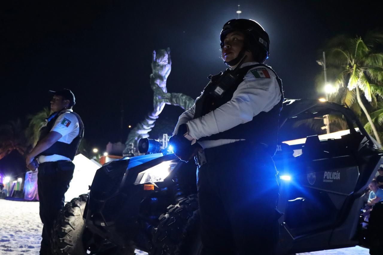 La presencia operativa de las fuerzas de seguridad se concentra estratégicamente en la zona federal marítima, las playas, la Quinta Avenida, los accesos principales y todos los puntos de alta afluencia de personas. En estas áreas se realizan recorridos constantes y se asegura la atención inmediata a cualquier reporte ciudadano. De manera complementaria, la SSC mantiene una coordinación institucional constante y fluida con el sector privado, incluyendo hoteles, complejos turísticos, restaurantes y clubes de playa.
