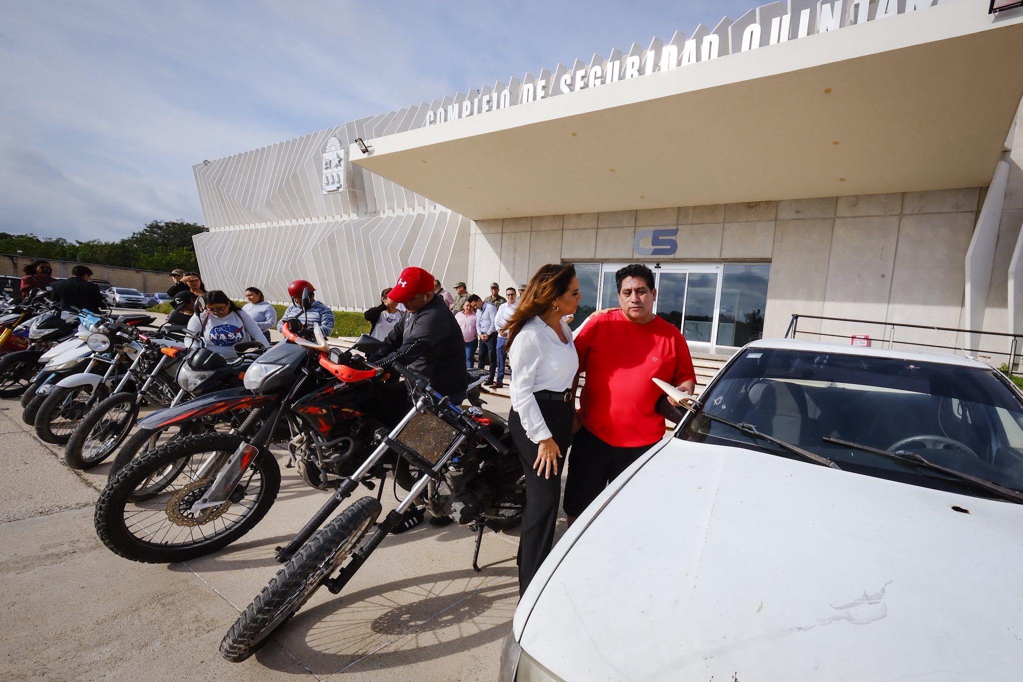 Cancún, Q. R. – Como parte de las acciones permanentes y coordinadas de la Mesa de Seguridad de Quintana Roo, la Fiscalía General del Estado (FGE) logró la entrega de un lote de vehículos y motocicletas a sus legítimos propietarios. En total, se devolvieron 12 motocicletas y un vehículo, un resultado directo de los esfuerzos que buscan combatir el delito y restablecer la paz social en la entidad. Este tipo de logros concretos son fundamentales para fortalecer la confianza de la ciudadanía en las instituciones de seguridad y justicia.