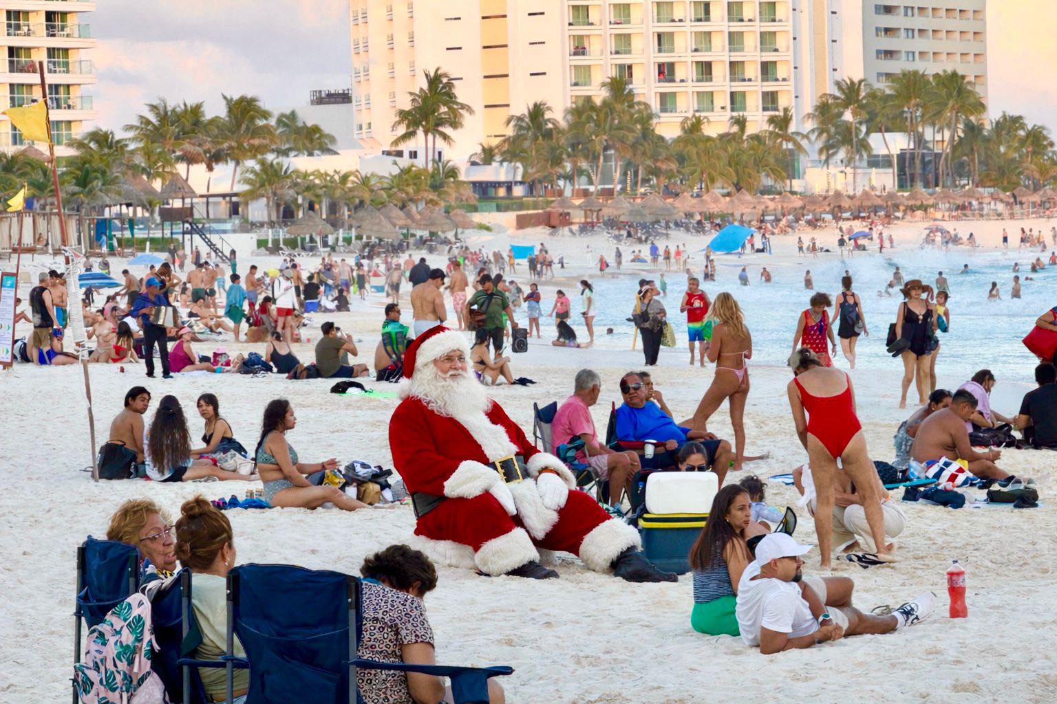 El Caribe Mexicano se convirtió en el escenario perfecto para esta postal navideña poco común. Entre palmeras, arena blanca y clima cálido, Santa en el Caribe Mexicano fue visto disfrutando de la hospitalidad de la región, reforzando el atractivo turístico de uno de los destinos más visitados del país durante la temporada decembrina.