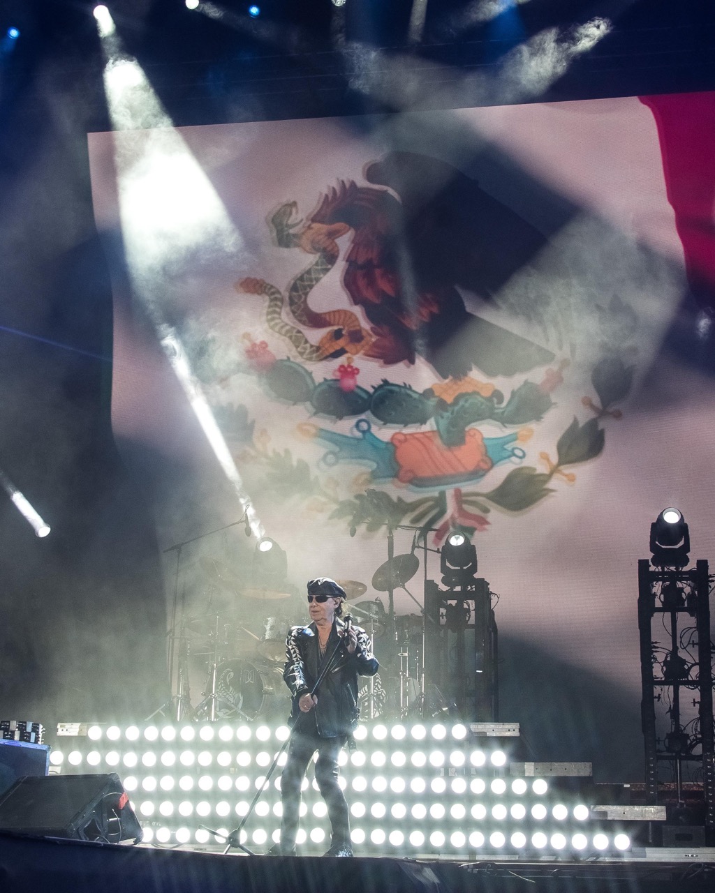 Rudolf Schenker y Matthias Jabs, con sus guitarras en mano, desplegaron riffs que resonaron como himnos atemporales, mientras Mikkey Dee en la batería y Paweł Mąciwoda en el bajo mantuvieron un ritmo impecable que hizo vibrar a todo el Estadio GNP Seguros.