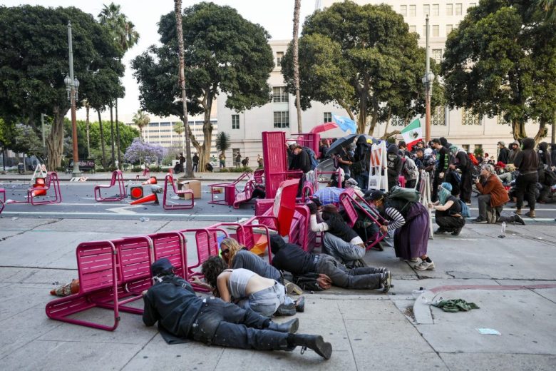 Minutos después, la Policía de Los Ángeles disparó rondas de municiones de control de multitudes para dispersar a los manifestantes, alegando que se habían reunido de forma ilegal. Gran parte del grupo luego se movió para bloquear el tráfico en la autopista 101 hasta que los agentes de la patrulla estatal los desalojaron de la carretera a última hora de la tarde.