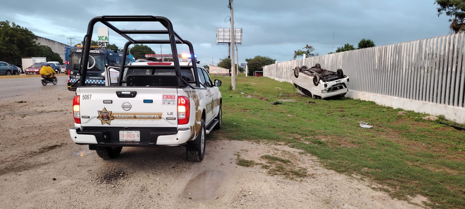 El vehículo involucrado en el siniestro es una camioneta de la marca Nissan, tipo Urvan, de color blanco, la cual era conducida en dirección hacia el centro de Cancún. Según los reportes preliminares, el chofer transitaba en el sentido de sur a norte cuando ocurrió el accidente con rotación, dejando la unidad con daños materiales considerables. Afortunadamente, por la hora del reporte, el flujo vehicular apenas comenzaba a intensificarse, lo que evitó que otros autos particulares fueran golpeados durante la trayectoria de la unidad fuera del camino.