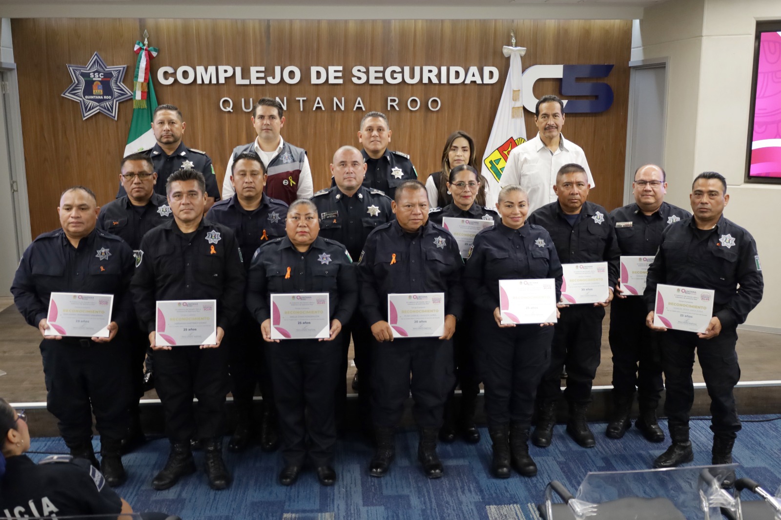 Benito Juárez, Quintana Roo.- Este día, la Secretaría de Seguridad Ciudadana (SSC) reconoció a mujeres y hombres policías que cumplieron 20, 25 y 30 años de carrera, durante una emotiva ceremonia en las instalaciones del Complejo de Seguridad C5. El evento destacó la disciplina, compromiso y entrega de estos oficiales en favor de la seguridad de la sociedad quintanarroense.