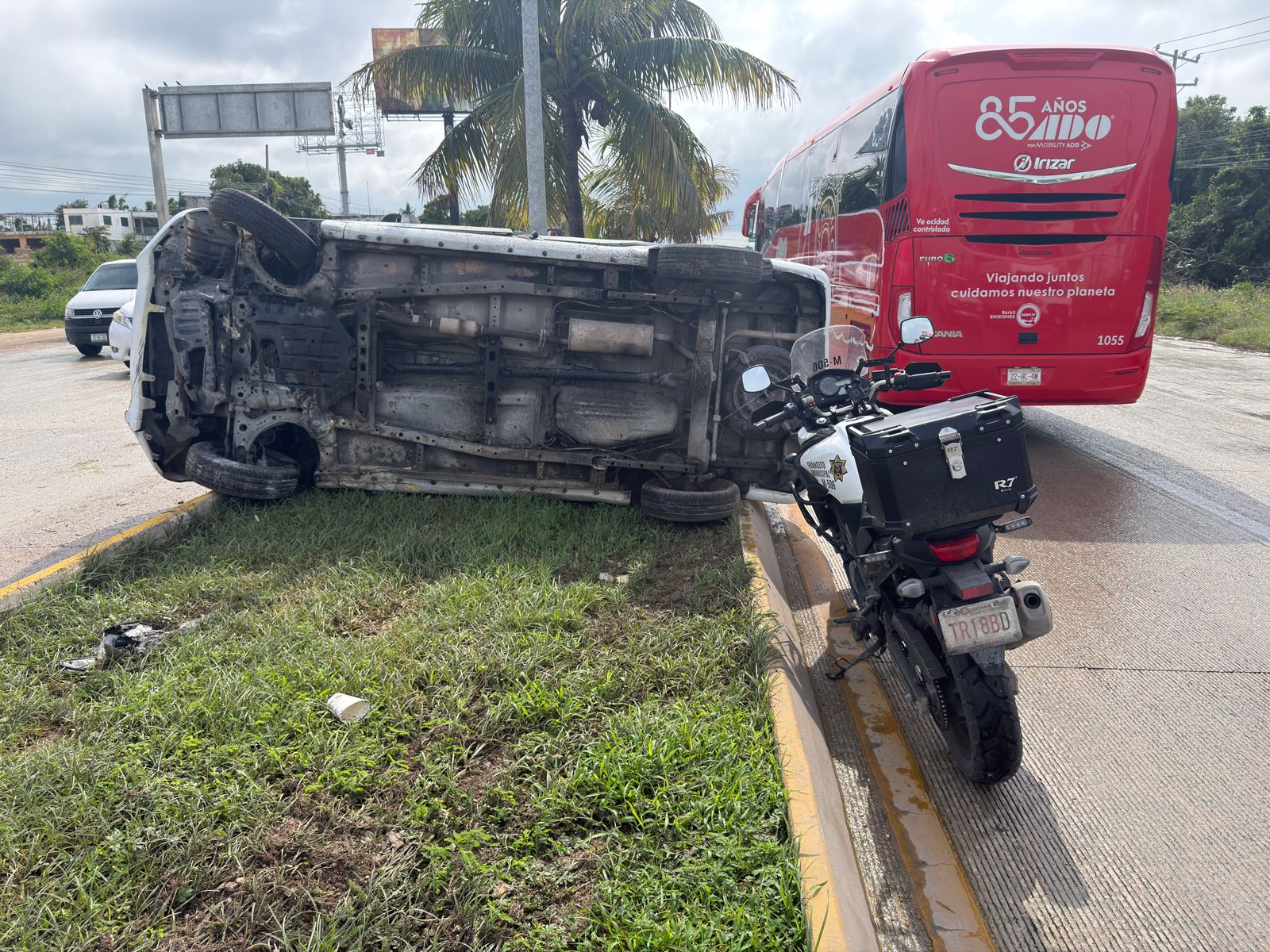 El siniestro ocurrió a la altura de las Bodegas Apq, en el tramo con dirección al Aeropuerto Internacional de Cancún, una ruta de alto flujo vehicular. El vehículo involucrado es un Toyota Avanza, de color blanco con verde, utilizado comúnmente como taxi colectivo. Por fortuna, y a diferencia de otros accidentes recientes en la zona, el reporte inicial no menciona lesionados graves, aunque se presume que el conductor o los pasajeros pudieron haber sufrido golpes por el impacto y la volcadura.