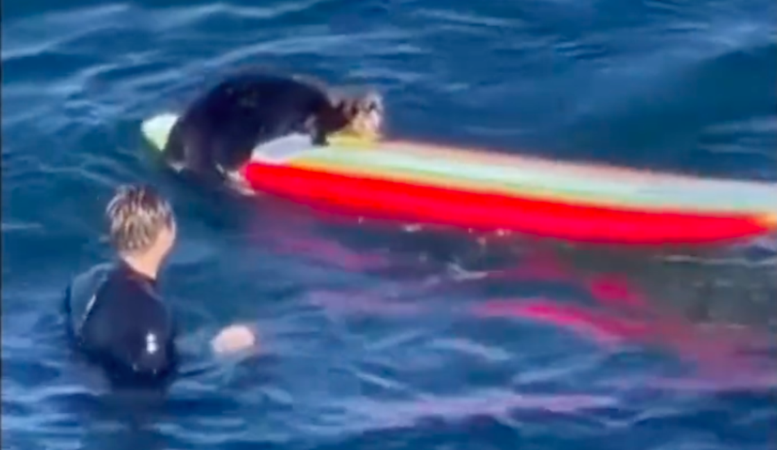 Sí, incluso personas han grabado cómo esta pequeña nutria se sube como toda una pirata a las tablas de los surfistas y se apropia de ellas, a pesar de que intentan asustarla para que las deje en paz.