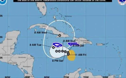25 de octubre de 2025.– La tormenta tropical “Melissa” avanza en el Caribe, con un modelo de trayectoria que apunta hacia Cuba, según el último reporte del Sistema Meteorológico Nacional (SMN). Su centro se localiza a 345 kilómetros al sureste de Kingston, Jamaica, y a 1,425 kilómetros al este-sureste de Cancún.