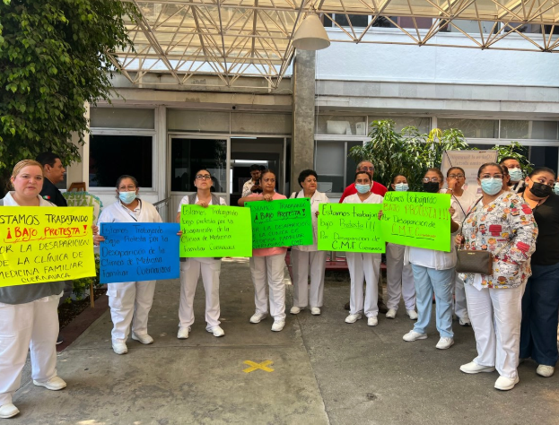 Trabajadores protestan por el cierre de la clínica del Issste en Cuernavaca