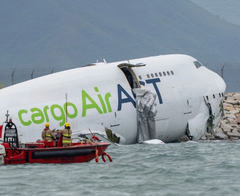 El vuelo EK9788, que volaba para Emirates SkyCargo, se salió de la pista durante las maniobras de aterrizaje, precipitándose directamente a las aguas adyacentes al aeropuerto. La aeronave quedó parcialmente sumergida al borde del malecón. Imágenes difundidas por las emisoras locales de Hong Kong mostraban la cabina y la parte delantera del avión por encima del agua, mientras que la cola parecía haberse desprendido como resultado del fuerte impacto.