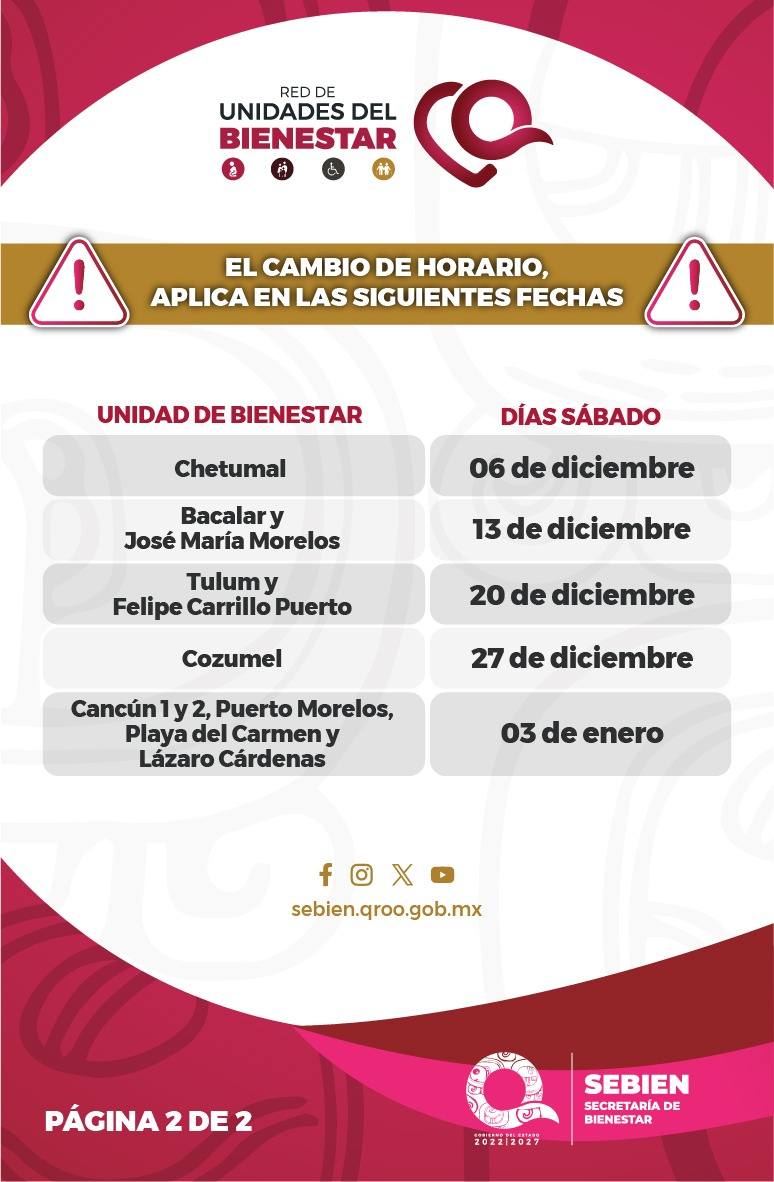 Finalmente, se recordó que las Unidades del Bienestar son espacios inclusivos y gratuitos para quienes cuentan con su registro vigente. Los trabajos que se realizarán este 20 de diciembre son una muestra de que se sigue trabajando arduamente para que el servicio no solo sea constante, sino también excelente. Se invita a los habitantes de Tulum y Carrillo Puerto a aprovechar estos días previos para surtir sus recetas o programar citas, aprovechando que la red está siendo fortalecida para enfrentar los retos de salud pública que surjan en el futuro.