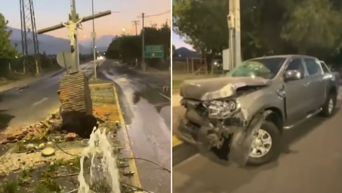 31 de Diciembre del 2025.- La mañana de este miércoles, los habitantes de la comuna de Puente Alto, en la región metropolitana de Santiago de Chile, fueron testigos de un impactante suceso. Un conductor perdió el control de su camioneta gris y terminó impactando violentamente contra una estructura religiosa situada a un costado del camino. Este choque en Puente Alto no solo causó daños materiales al automóvil, sino que resultó en la destrucción total de una conocida efigie que representaba la figura de Cristo.