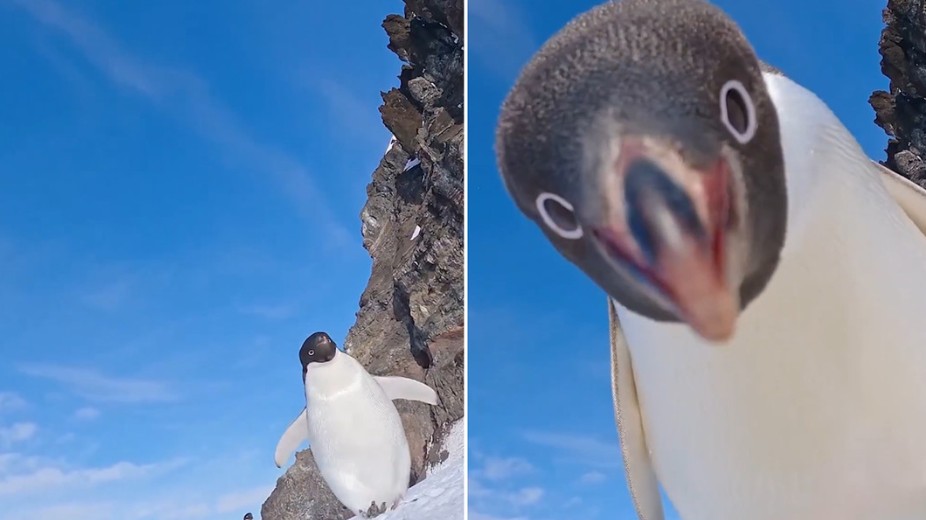 En las imágenes se aprecia cómo el pingüino Adelia se acerca lentamente al objeto, lo rodea y parece examinarlo con el pico. El animal incluso da la impresión de intentar comer la cámara, un gesto que refleja su instinto explorador frente a cualquier elemento extraño que encuentra en su camino. Todo ocurre sin la presencia visible de personas, lo que refuerza la naturalidad de la escena.