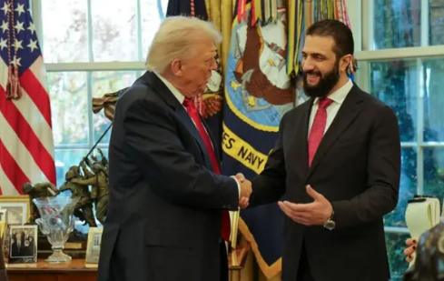 El nuevo líder sirio ha tenido un acercamiento notablemente exitoso con potencias occidentales. A solo dos semanas de asumir el poder, recibió a diplomáticos estadounidenses, lo que llevó a Washington a retirar la recompensa de US$10 millones que ofrecía por su captura. Desde entonces, las sanciones que pesaban sobre el país se han reducido, y la estricta Ley César ha sido suspendida. Un hito importante fue su visita a la Casa Blanca, donde se reunió con Donald Trump, quien lo describió como «joven, atractivo y duro». Este respaldo internacional es clave, ya que gobiernos como el saudita y el occidental lo consideran la única opción viable para evitar que la Siria Post-Al Assad caiga nuevamente en una guerra civil.
