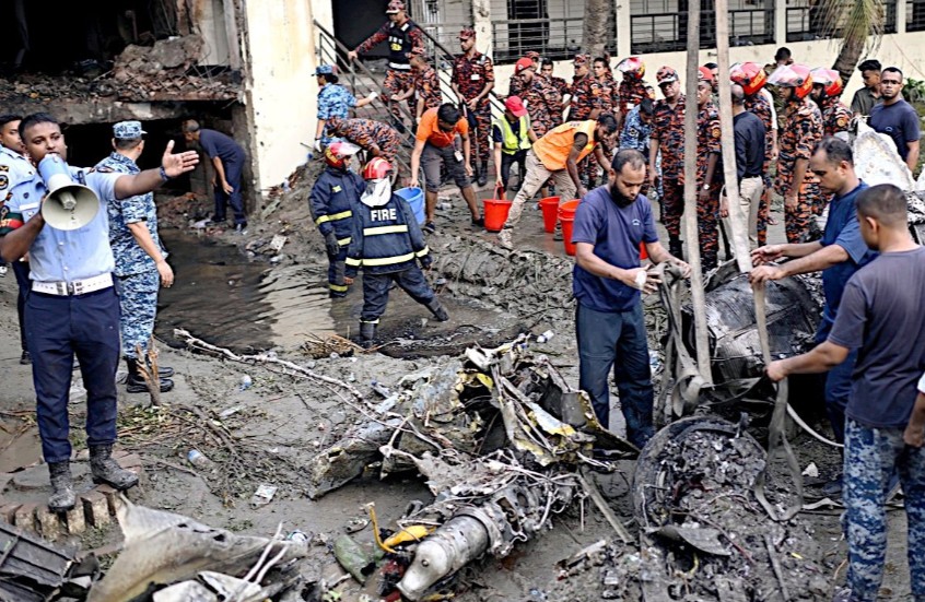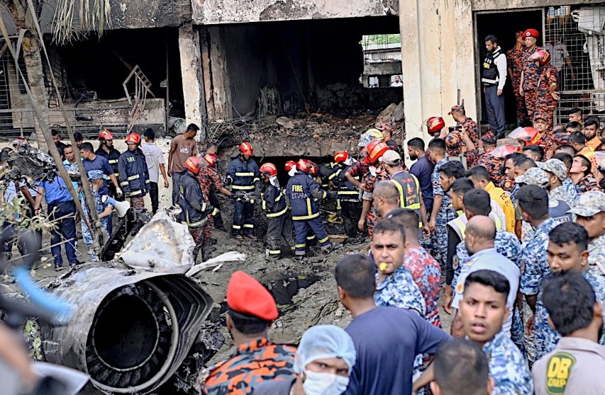 21 JULIO 2025- INTERNACIONAL- Al menos 19 personas murieron tras el estrellamiento de un avión militar de entrenamiento perteneciente a la Fuerza Aérea de Bangladesh en una escuela ubicada en el barrio de Uttara, en la capital Daca. El siniestro ocurrió en pleno horario escolar, mientras estudiantes de la Milestone School and College se encontraban realizando exámenes y asistiendo a clases normales. Las autoridades locales confirmaron que el aparato implicado fue un F-7 BGI, modelo que ya ha estado envuelto en incidentes previos.