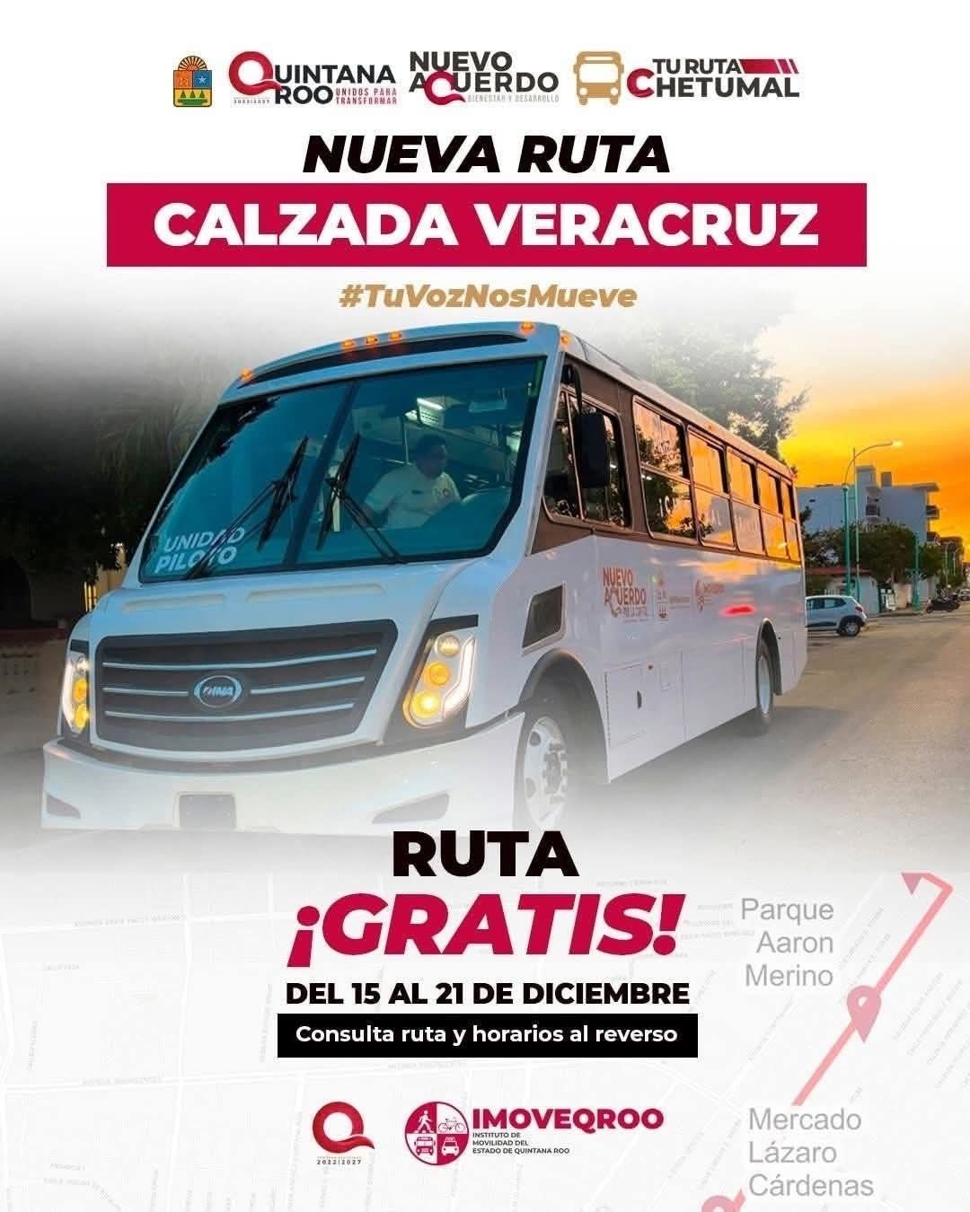 Para incentivar el uso de este nuevo transporte, se anunció una dinámica especial relacionada con el costo del pasaje durante los primeros días. Los usuarios podrán viajar en la ruta Calzada Veracruz de manera totalmente gratuita hasta el próximo 21 de diciembre, lo que permite conocer el servicio sin afectar su bolsillo. Es una oportunidad ideal para que las familias chetumaleñas se familiaricen con el trayecto y los puntos de parada establecidos en este nuevo esquema.