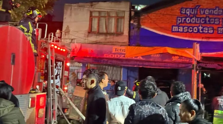 6 NOVIEMBRE 2025-NACIONAL-Un fuerte incendio se registró durante la madrugada de este jueves en una bodega que almacenaba alimento para mascotas, ubicada en la colonia Morelos, alcaldía Venustiano Carranza, en la Ciudad de México. El siniestro, que habría sido provocado por un corto circuito, consumió por completo el local y afectó otros cinco espacios dentro del mercado Emiliano Carranza, donde se vendían pequeños animales y accesorios para su cuidado.