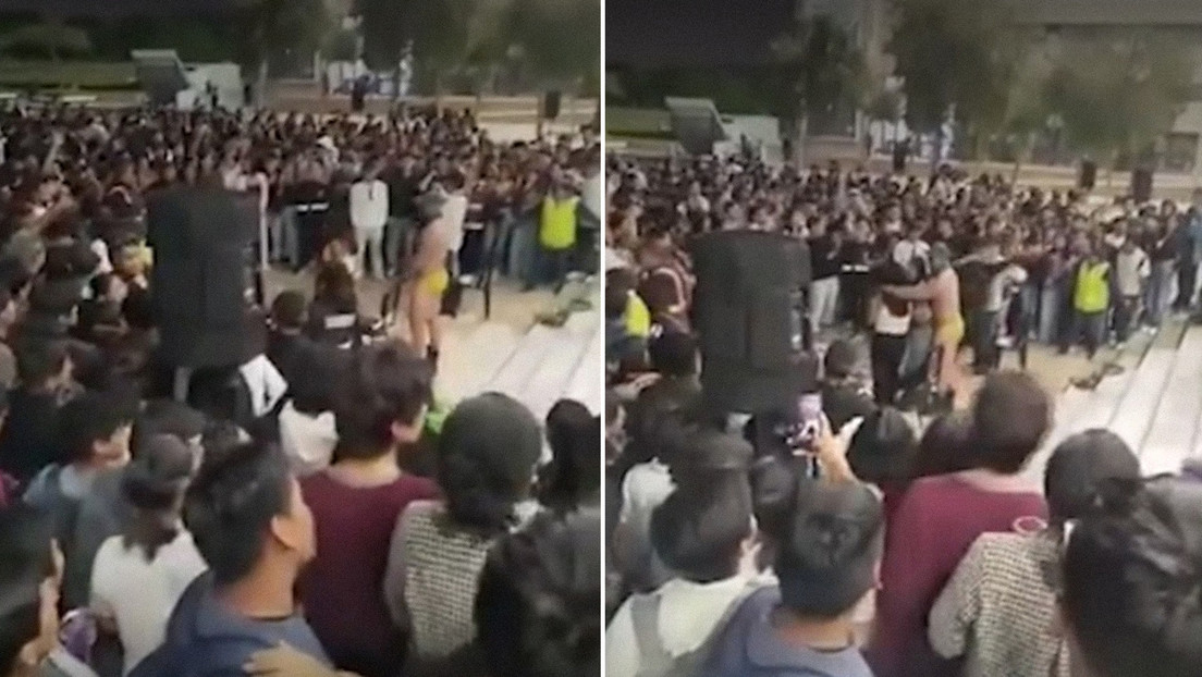 Los videos difundidos muestran claramente a un hombre y una mujer realizando bailes eróticos y desnudándose parcialmente sobre una tarima improvisada, mientras interactuaban físicamente con algunos estudiantes que subieron al escenario. El show contó con la participación de un animador que alentaba el comportamiento y un equipo de sonido de alta potencia que atrajo a una multitud considerable. La presencia de teléfonos móviles permitió que el acto fuera grabado desde múltiples ángulos por un sinnúmero de personas, lo que facilitó que las imágenes llegaran rápidamente a la opinión pública y a las autoridades rectoras, quienes desconocían la naturaleza de lo que estaba ocurriendo.