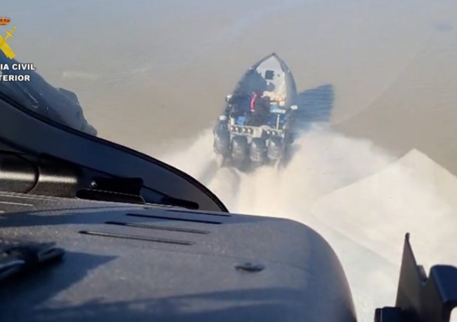 El operativo comenzó cuando el Sistema Integral de Vigilancia Exterior (SIVE) detectó una embarcación que navegaba de forma sospechosa al oeste de Chipiona. Ante la posibilidad de un desembarco ilegal, se desplegaron dos patrulleras y un helicóptero del cuerpo, confirmando que la lancha transportaba fardos de arpillera y contenedores de combustible, típicos del narcotráfico.