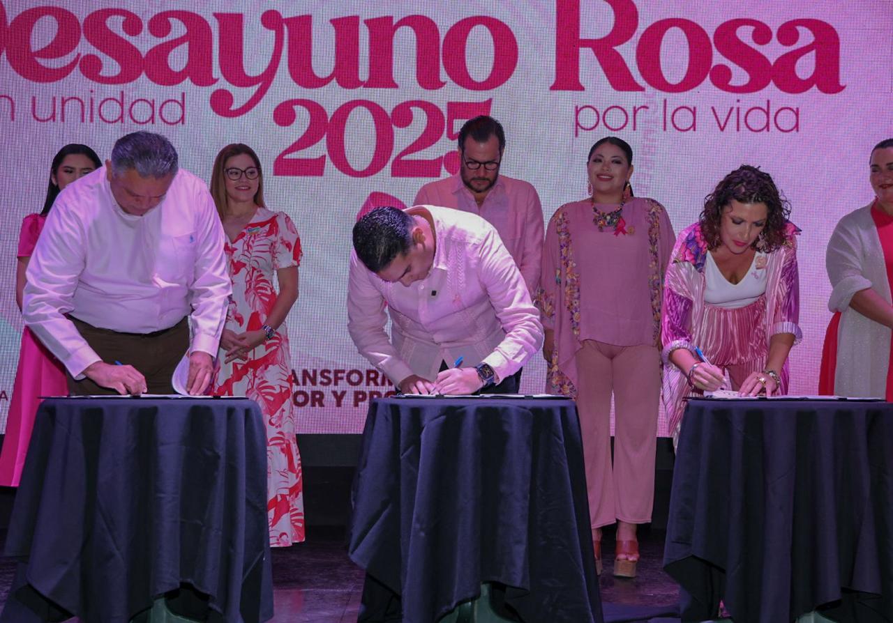 20 de Octubre del 2025.- En un emotivo encuentro marcado por la esperanza y la unidad, el Gobierno de Playa del Carmen, encabezado por la alcaldesa Estefanía Mercado, llevó a cabo el «Desayuno Rosa ‘En Unidad por la Vida'». Este evento con causa, organizado a través del Sistema DIF Municipal, logró reunir a más de 300 personas con el objetivo de recaudar fondos cruciales. El dinero se destinará a financiar estudios de mastografía, fortaleciendo así la cultura de la detección temprana del cáncer de mama entre la población femenina del municipio.