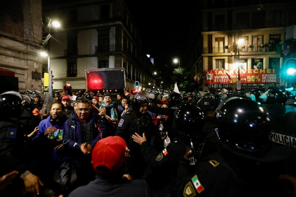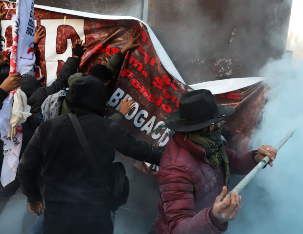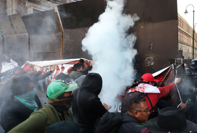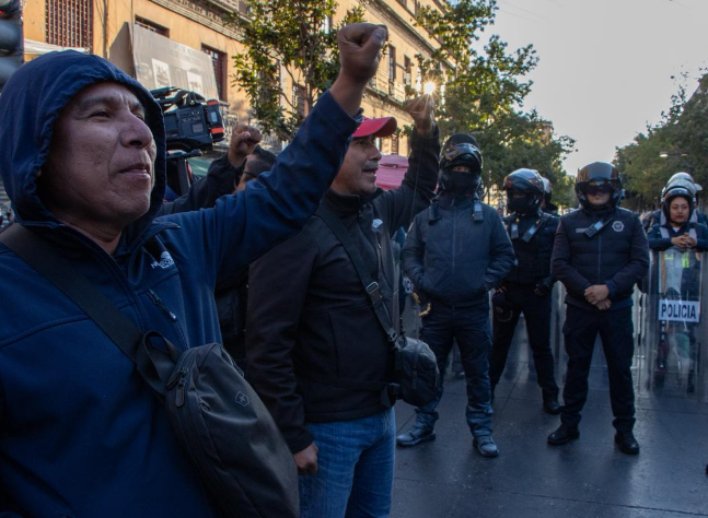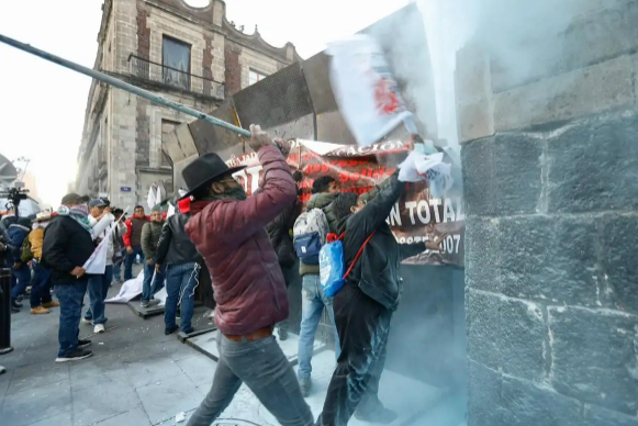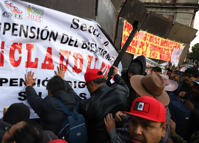 Como parte de su Jornada Nacional de Lucha de 48 horas, los profesores avanzaron desde la Plaza de la Constitución hasta la calle Correo Mayor, donde realizaron una protesta simbólica golpeando las vallas metálicas con monedas, banderas y puños, en señal de inconformidad. Sin embargo, la tensión creció cuando intentaron derribar las estructuras, lo que provocó una respuesta inmediata de la policía capitalina, que utilizó extintores y gas pimienta para contenerlos.
