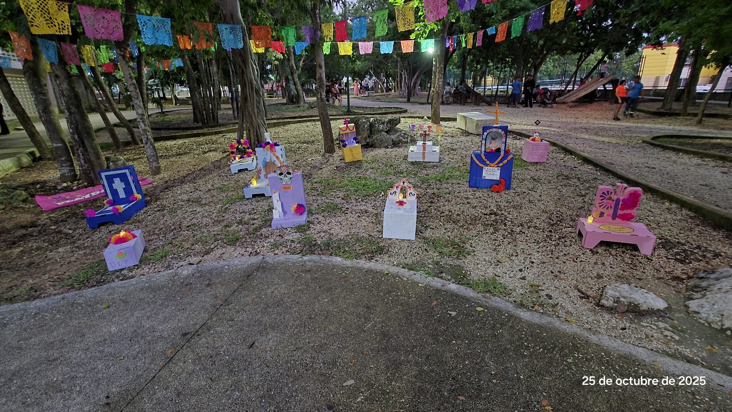 27 de Octubre del 2025.- El fin de semana, las calles de Villas Otoch Paraíso se llenaron de vida, color y tradición. Cientos de familias y vecinos se dieron cita para participar en el tercer desfile Janal Pixan que se organiza en la colonia. El evento se desarrolló en un ambiente festivo y solemne, comenzando a las 5:30 de la tarde. La ruta del desfile partió desde el Faro Cancún Parque T’úubul K’ilin Mercado Lak’in, avanzando con entusiasmo hasta su destino final, el Domo del Mercado Lak’in, donde concluyó la marcha cerca de las 7:30 de la noche.