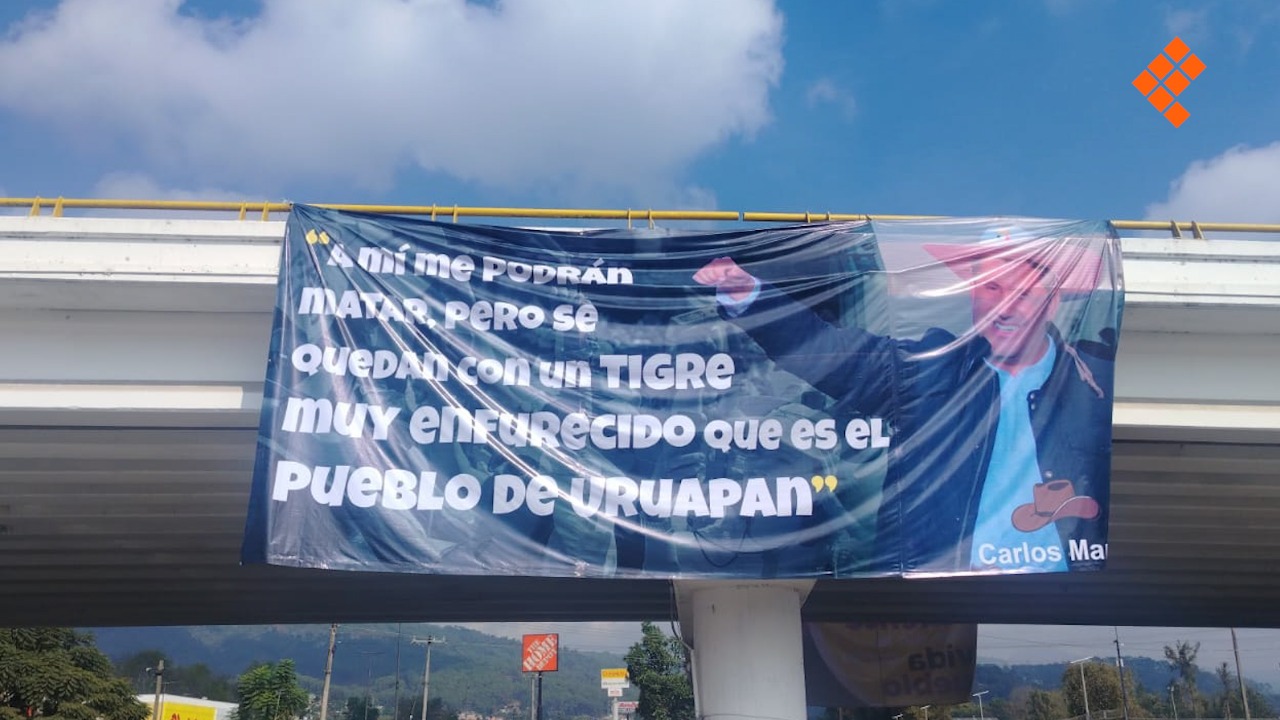 🚨 #Uruapan | Este lunes, a un mes del asesinato de Carlos Manzo, en principales avenidas y puentes del municipio, aparecieron lonas con frases que el exalcalde declaró cuando gobernaba. 🚨👇