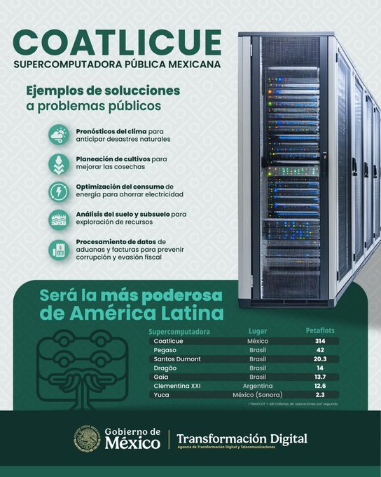 La Presidenta también detalló los factores determinantes que se están considerando para decidir dónde se ubicará la supercomputadora en el territorio nacional. Señaló que la disponibilidad de agua y el suministro de energía son los dos criterios principales. Una supercomputadora requiere una fuente de energía estable y potente para su operación, y al mismo tiempo, necesita una cantidad suficiente de agua para los procesos de enfriamiento, incluso con sistemas de reciclaje avanzados.