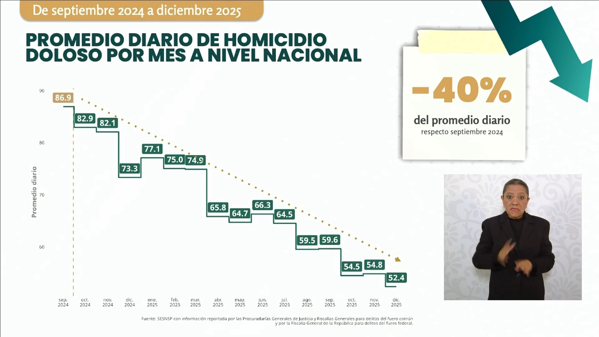 La presidenta Claudia Sheinbaum informó recientemente sobre un avance significativo en la seguridad pública del país. Durante su conferencia matutina, la mandataria destacó que los homicidios dolosos registraron una caída del 40% en el periodo comprendido entre septiembre de 2024 y diciembre de 2025. Esta cifra marca un hito en la administración actual, reflejando el impacto de las nuevas estrategias de pacificación implementadas en todo el territorio nacional.