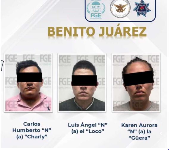 El fiscal general, Raciel López Salazar, informó que los detenidos fueron identificados como Carlos Humberto “N”, alias “Charly”; Luis Ángel “N”, alias “El Loco”; y Karen Aurora “N”, alias “La Güera”. Los tres fueron capturados mediante un operativo conjunto entre autoridades municipales, estatales y federales, y quedaron bajo prisión preventiva mientras avanzan las investigaciones.