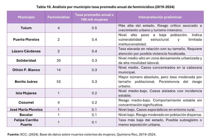 En ciudades como Playa del Carmen y Tulum, la concentración de casos también es notable. El estudio señala que la violencia letal contra las mujeres en estas ciudades está relacionada con el rápido desarrollo urbano y con la precarización del trabajo femenino en sectores vinculados al turismo, donde muchas trabajadoras enfrentan condiciones laborales inestables.