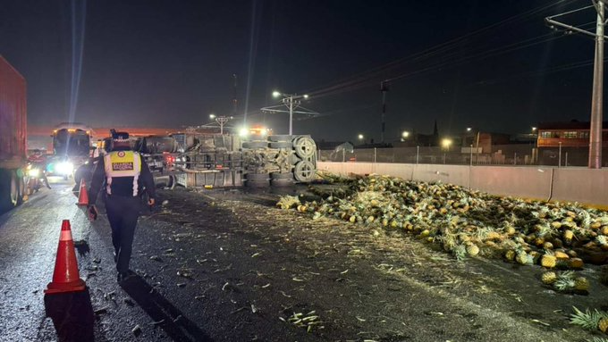 Afortunadamente, tras la revisión de los paramédicos que llegaron al sitio del siniestro, se determinó que el chofer del tráiler que transportaba piña solo presentaba lesiones menores. El conductor fue atendido en una ambulancia en el mismo lugar de los hechos y no requirió ser trasladado a un hospital de urgencia. Mientras tanto, elementos de la Guardia Nacional División Carreteras abanderaron la zona para evitar que otros vehículos chocaran contra la unidad volcada o con la fruta tirada en el suelo.