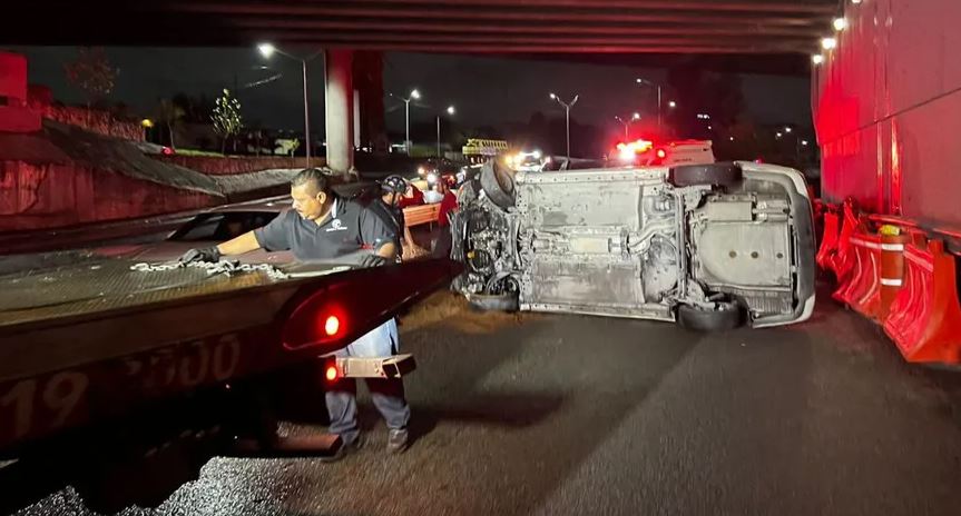 El percance ocurrió cuando el conductor del automóvil perdió el control del volante, provocando que el vehículo se volcara sobre la vialidad principal. Afortunadamente, no se registraron otros automóviles involucrados.