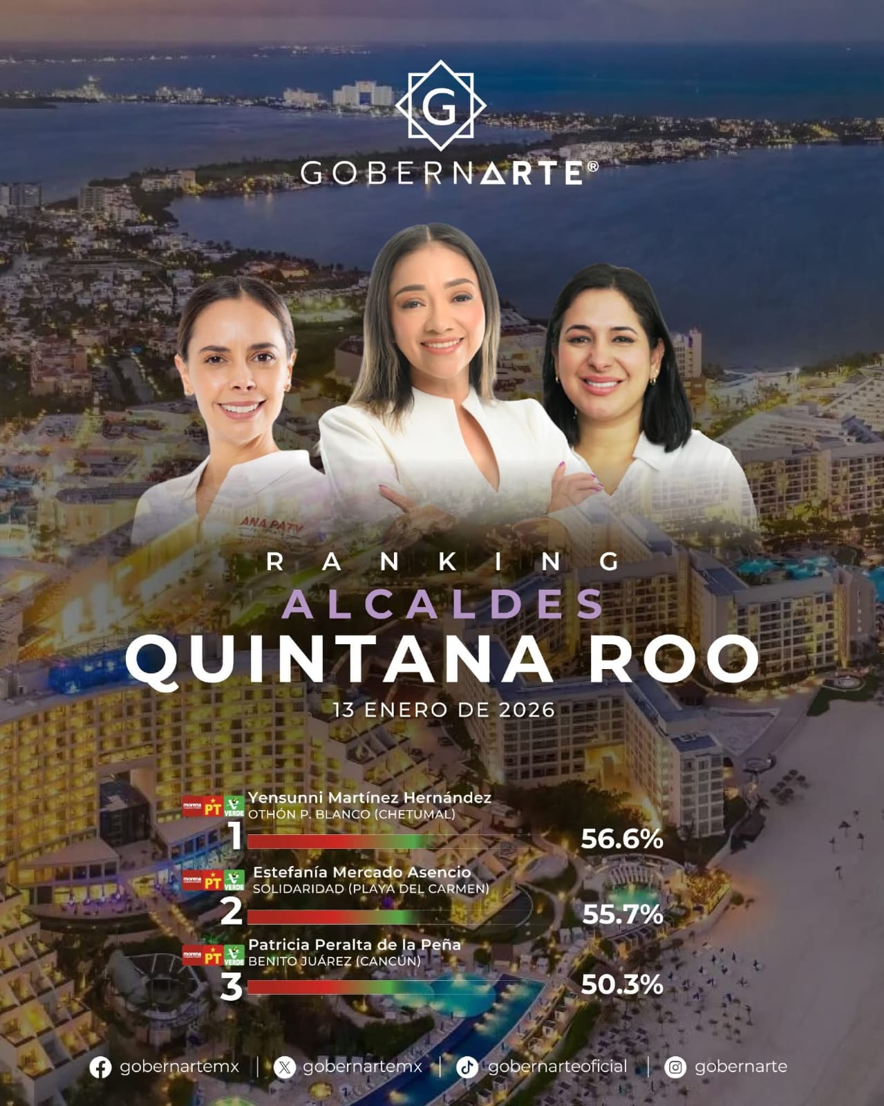 14 de Enero del 2026.- La presidenta municipal de Othón P. Blanco, Yensunni Martínez Hernández, ha iniciado el año 2026 con un importante reconocimiento a su gestión administrativa. Según los resultados más recientes de la organización GoberArte, la funcionaria se posicionó como la dirigente municipal con mayor aprobación en todo el estado de Quintana Roo. Este logro destaca el impacto de las políticas públicas implementadas en la capital y sus alrededores, reflejando una percepción positiva por parte de los habitantes hacia el trabajo realizado desde el Ayuntamiento.
